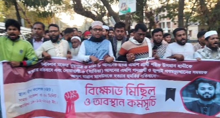 ওসমান হাদিকে হত্যার প্রতিবাদে হাতিয়ায় বিক্ষোভ মিছিল